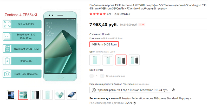 Глобальная версия, дисплей Full HD IPS, Snapdragon 630, 4/64, 3300 мАч, NFC (!), двойная камера с оптическим стабилизатором и с шириком, причем камеры и все остальное хвалят на Mobile Review, только сетуют на высокую цену в 36 тысяч. Ну, в 36 тысяч - высоковато, да. А за 8 тысяч с защитным стеклом и чехлом? Причем это хотя и спецпредложение (12 штук в наличии), но на Ali еще пара предложений по цене в 9 тысяч, а там их в наличии 800 штук.