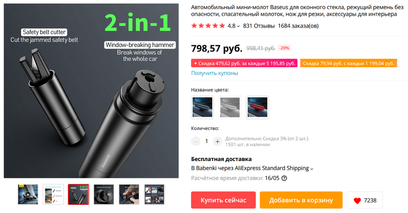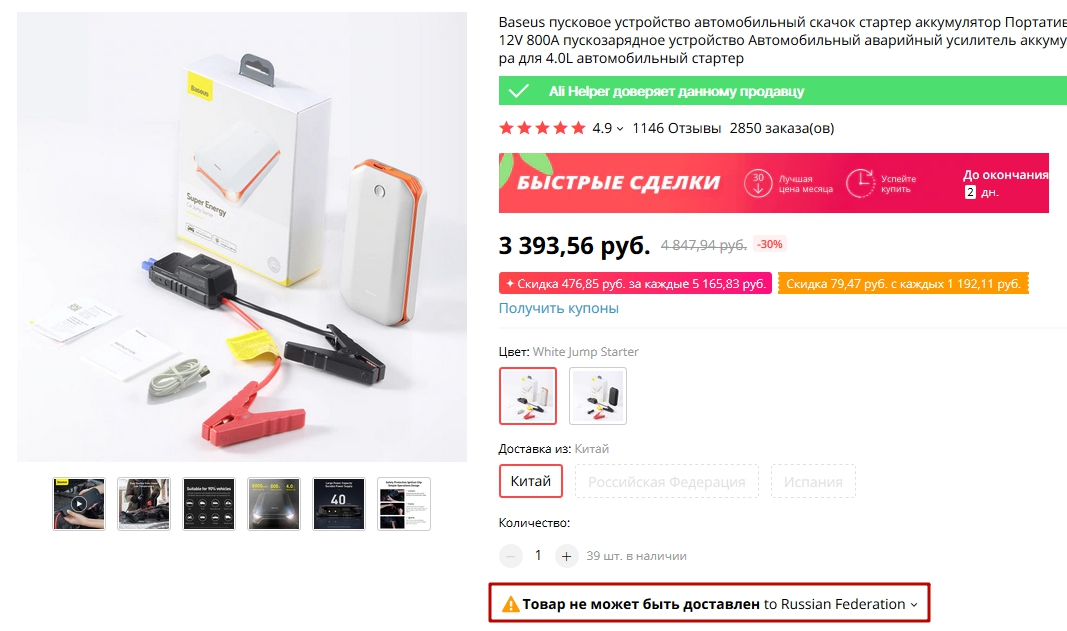 Хотел заказать автомобильную зарядку "Ugreen 3 Port USB Car Charger+QC3.0 (черная)" на Али, но там её не оказалось даже в официальном магазине. Купил в Озоне за 650 р. минус мои баллы, один порт действительно быстрая зарядка за 1 час моего Samsung Galaxy A8 4/32GB. И, как здесь упоминали, некоторые товары можно проще и быстрее примерно за те же деньги купить в РФ, в частности на Озоне - и это не реклама . Например, купил на Али "25 в 1 Прецизионная отвертка Torx Набор инструментов для ремонта бумажника сотового телефона для мобильного телефона, электроники ПК" набор мелких бит 25 штук - доставка 3 недели. На Озоне потом посмотрел похожий набор "Набор прецизионных отверток DEKO GJ28" за 190 р, зато доставка 1 день. Сейчас на Али набор стоит 227 р., доставка неизвестно когда, на Озоне 219р. Открутить мелкие винтики получилось. В принципе, и автотовары покупаю также, прошерстив прайсы 6 магазинов; на Али как-то не получилось пока ничего купить, у нас и дешевле и быстрее пока.