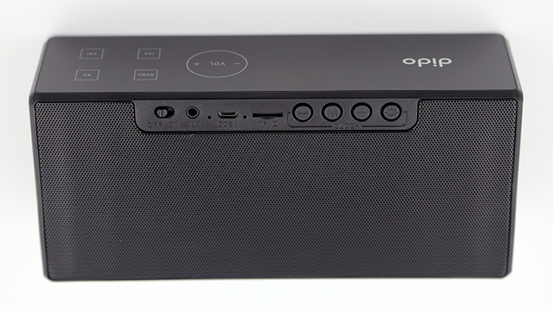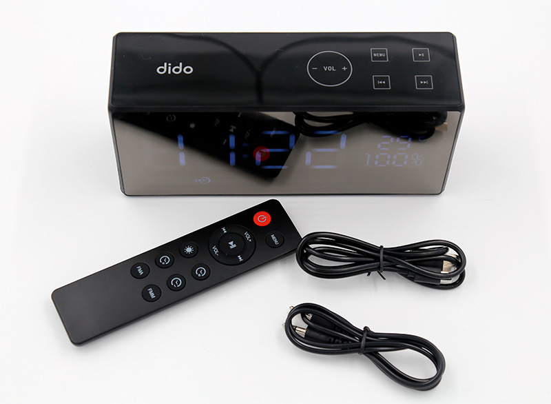 На верхней крышке - сенсорное управление: громкость, выбор источника, переключение треков, играть/пауза. На задней части - включение/выключение, аудиовыход, microUSB, слот для microSD, четыре кнопки настроек часов, будильников (их два), яркости часов (три уровня). Для будильников можно выбрать или одну из пяти предустановленных мелодий (приятная фортепьянная музыка), радио (установленная станция), воспроизведение с карты памяти (начиная с первого трека).
