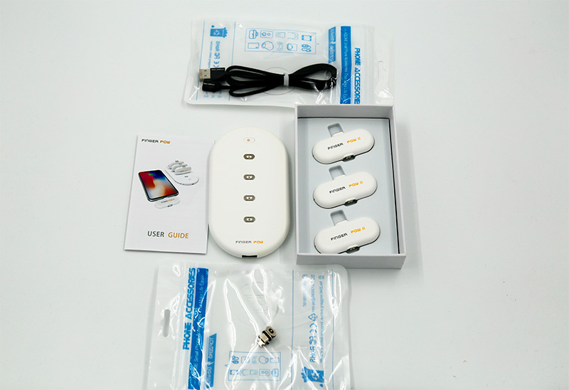 Очень прикольная и инновационная штука - люблю такое. Это беспроводной аккумулятор с сателлитами Finger Pow II - 2700 рублей (один вариант комплектации есть с поставкой из России). Основной аккумулятор на 5000 мАч, от него также запитываются три маленьких аккумулятора на 1100 мАч. Маленькие аккумуляторы имеют сменные магнитные головки под три вида портов: microUSB, USB-C  и айфоновский/айпэдный Lightning.