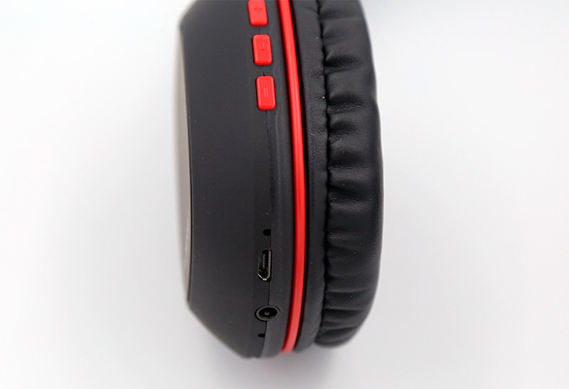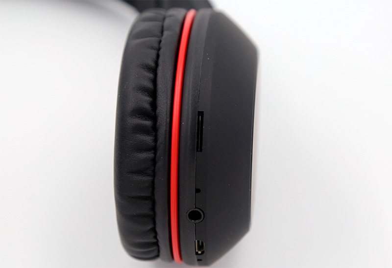 На левой чашке - все управление и все порты: три кнопки управления, микрофон, порт microUSB, аудиопорт, слот для microSD.