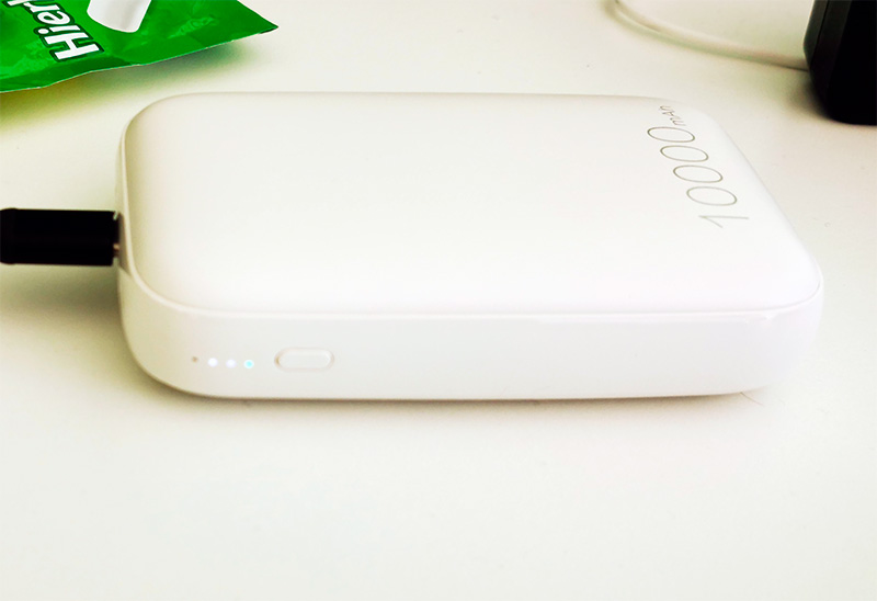 Уровень заряда самого аккумулятора показывают четыре светодиодных индикатора, расположенные сбоку рядом с кнопкой включения.