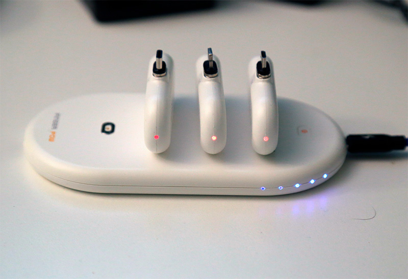 В комплекте: основной аккумулятор, три маленьких аккумулятора, инструкция, кабель с магнитной головкой, три сменных головки.
