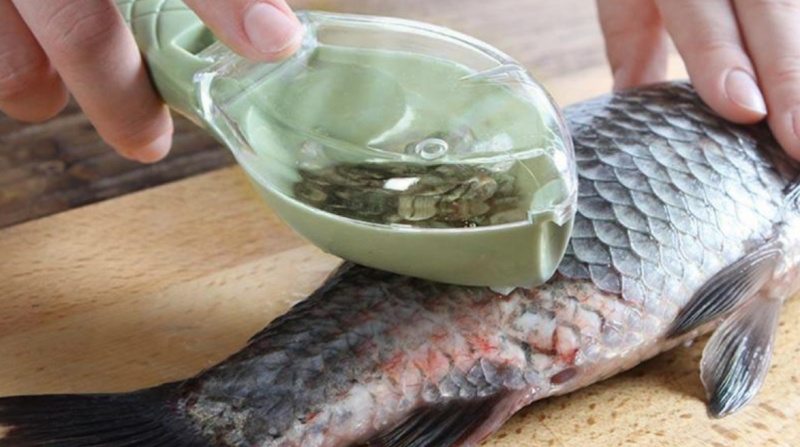 Спокойно чистите рыбу, вся чешуя остается внутри. Отлично придумано, как я считаю. Уже опробовал - отлично работает!