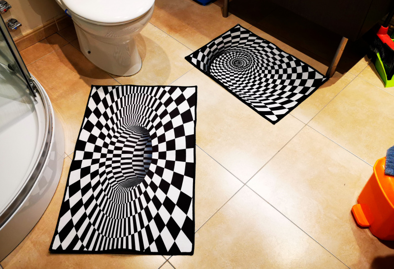 Приехали очередные скандинавские мягкие фланелевые коврики с оптическими иллюзиями (есть разных размеров и расцветок). Они и для ванной отлично подходят (низ прорезиненный, не скользят), да и в комнатах тоже вполне нормально смотрятся. У моих предыдущих белый цвет потемнел, коврики стали смотреться хуже, чем раньше - заменил на новые.
