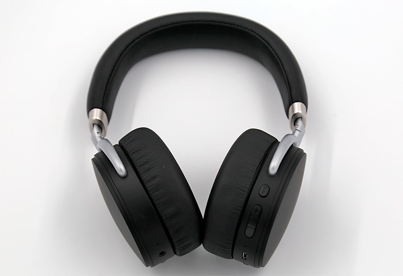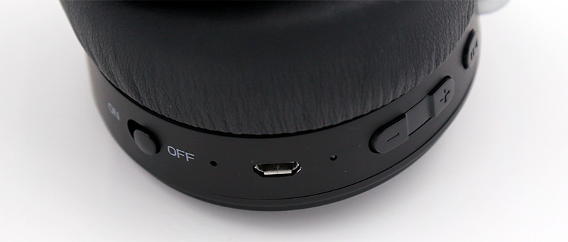 Управление кнопочное. На правой чашке: кнопка включения, микрофон, порт microUSB для зарядки, светодиод, регулировка звука, кнопка играть-пауза.