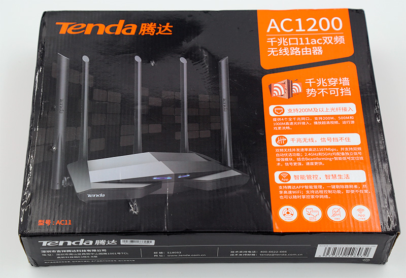 Недорогой беспроводной Wi-Fi маршрутизатор Tenda AC11: 1200 Мбит/с, 1 ГГц CPU + 128 МB DDR3, 1WAN + 3 LAN гигабитные порты, 5 * 6dBi антенны с высоким коэффициентом усиления.