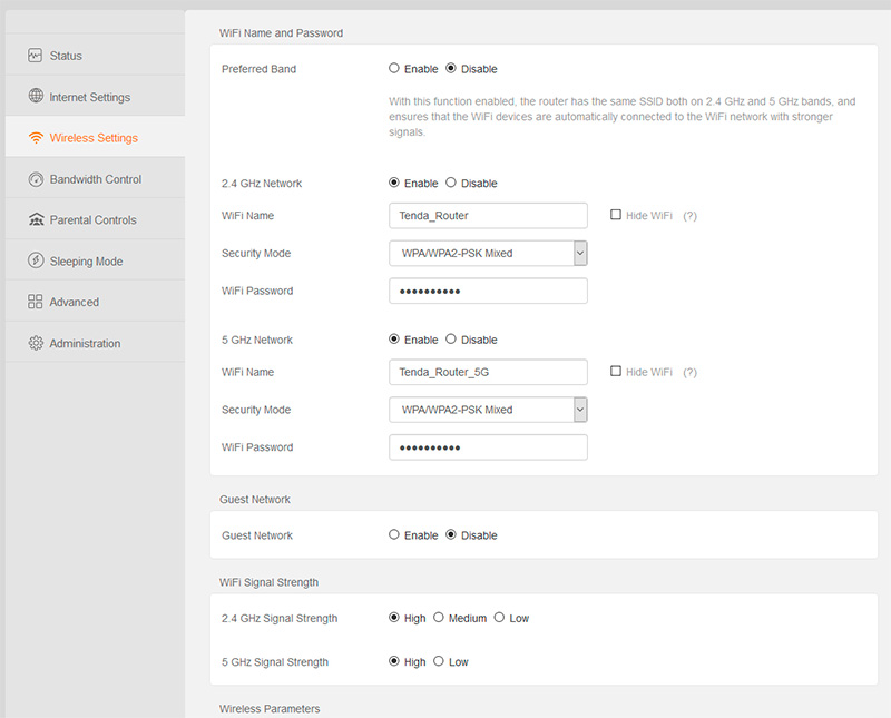 Wi-Fi настраивается очень гибко. Можно сделать две отдельные сети на 2.4 Ггц и 5 Ггц, а можно сделать режим Preffered Band: тогда сеть будет одна, а на какой частоте подключаться - будут выбирать сами устройства в зависимости от уровня сигнала.