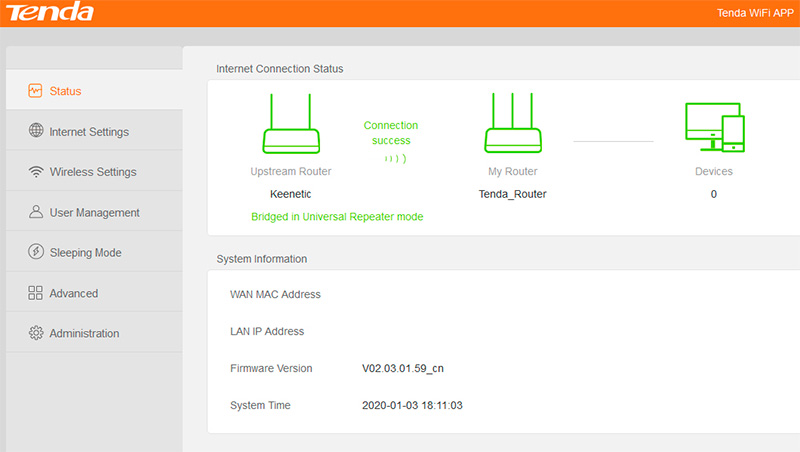 Проверил работу в режиме универсального усилителя по WiFi без проводного подключения. Роутер предложил выбрать беспроводную сеть, к которой он должен подцепиться, подключился и тоже все заработало как полагается.