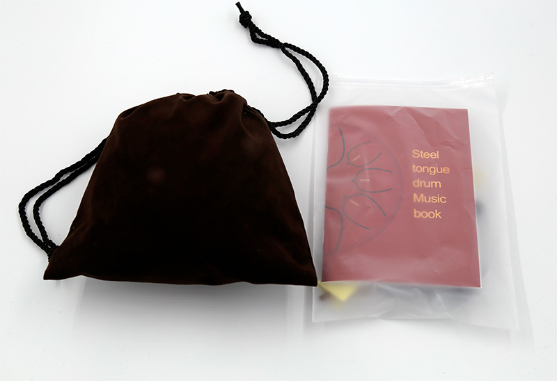 Выполнен из металла, каждый язычок играет свою ноту. Приезжает в чехле, в отдельном пакете - все остальное.