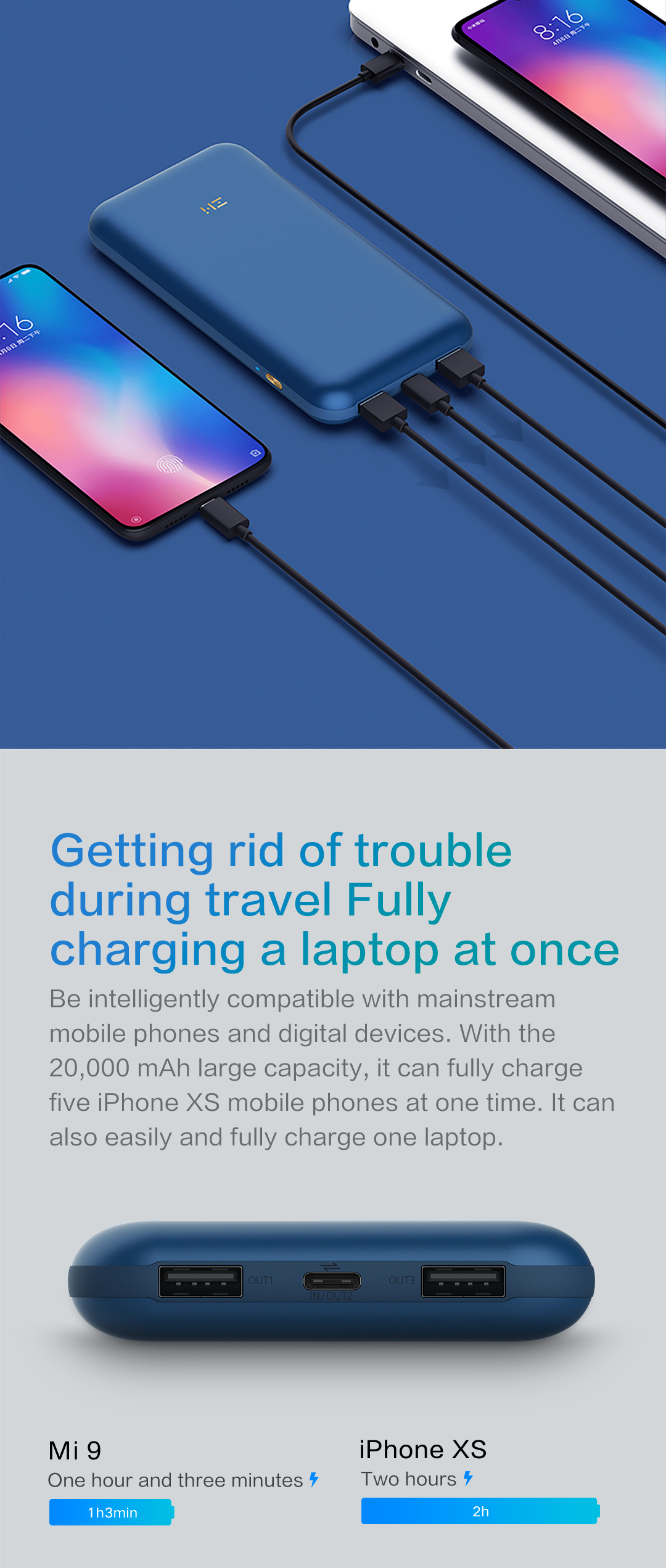 Новый повербанк ZMI QB823 20000 mAh для зарядки ноутбуков, мощностью 65W. В отличие от недорогих повербанков Xiaomi используются более качественные батареи от Samsung.