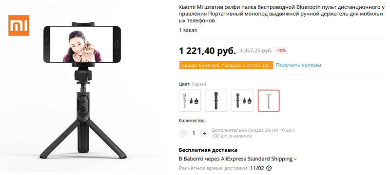 Вот эту селфи-палку от Xiaomi, она же штатив, очень хвалили - заказал. У нее еще и пульт управления съемный, можно делать групповые фотографии вместе с фотографирующим.