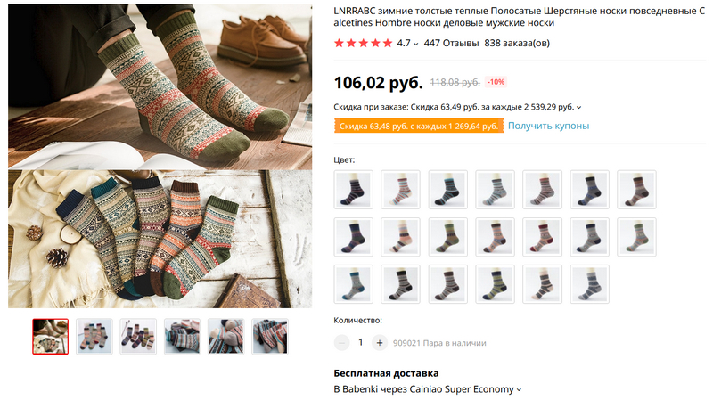 Upd: Зимние толстые теплые носки различных расцветок - шерсть, нейлон, хлопок. Качество хвалят, они еще и в первой пятерке по продажам.