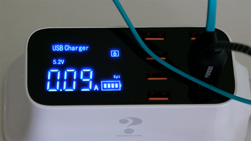 Если воткнуто несколько устройств, то на дисплее последовательно показывается данные по подключенным портам (по номерам). И суммарная мощность зарядки по всем портам будет 40 Ватт - это достаточно много.