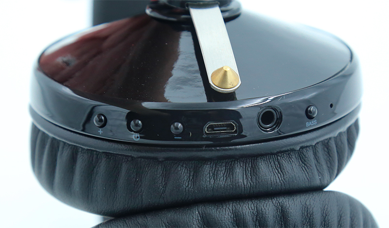 На правой чашке слева направо: регулировка громкости и кнопка питания, порт для зарядки, аудиовход для проводного подключения, кнопка включения расширенного баса, микрофон.