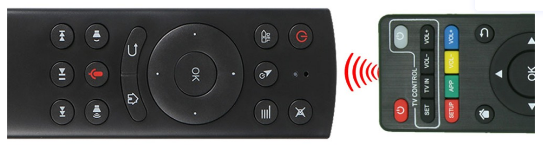 Нужно зажать эту кнопу до мерцания индикатора, положить рядом и направить "родной" пульт Дюны и нажать кнопку вкл.