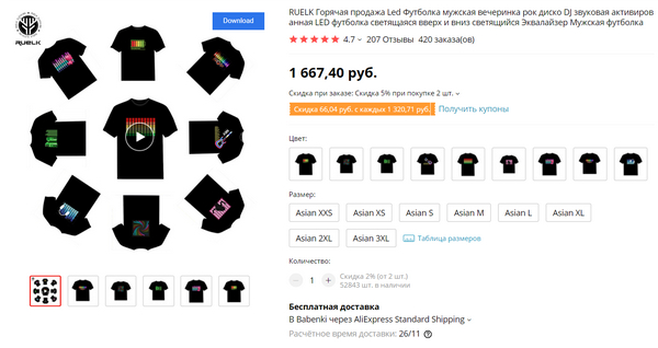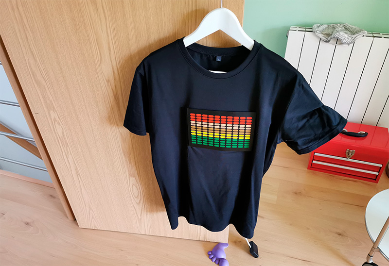 Майка со светодиодами. Есть разные варианты. Младший Экслер обнаружил, попросил заказать. Я сначала заказал под себя - проверить. Размеры азиатские, поэтому предусмотрительно заказал XL, хотя у меня обычный L (иногда даже M подходит).