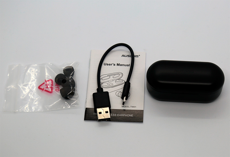 Комплект: наушники в кейсе, кабель для зарядки, инструкция на английском, еще две пары амбушюр разных размеров (такое для TWS-наушников редко встречается).