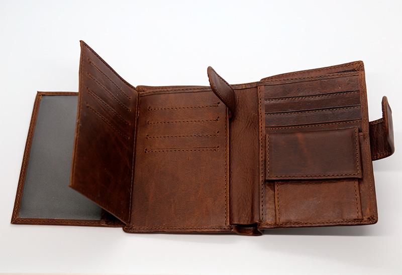 Мне такой вариант нравится больше всего: отделение для бумажных денег, для мелочи, отделения для удостоверения личности, прав и так далее, раздел для постоянно используемых пластиковых карт, большой раздел для реже используемых банковских карт и скидочных карт.
