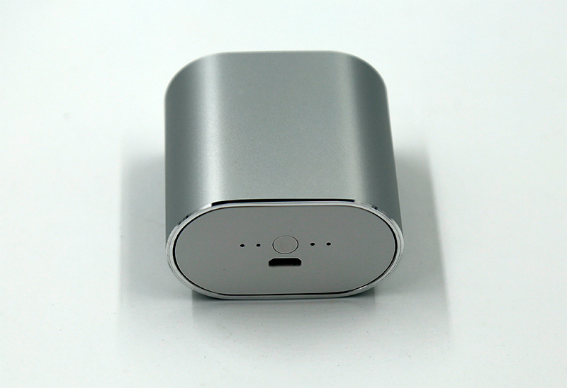 Кейс полностью закрывается, в торцевой части - индикаторы уровня зарядки наушников, порт для зарядки аккумулятора кейса. Индикаторы постоянно не горят, они загораются ненадолго при нажатии кнопки.