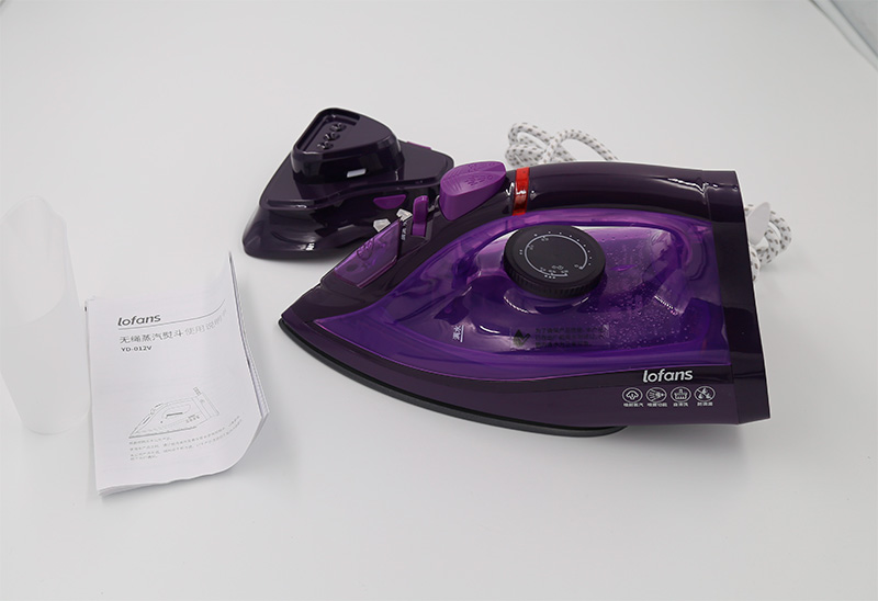 В комплекте: утюг, зарядный крэдл, инструкция на китайском, емкость для воды.