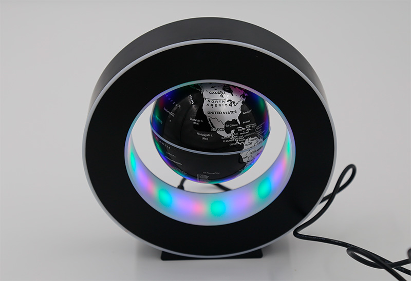 При выключении питания глобус просто примагничивается к верхней части подставки.