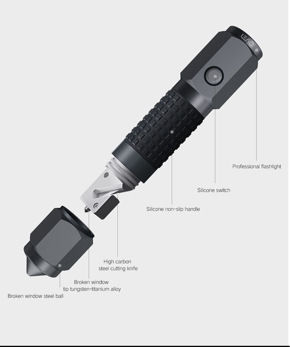 Молоток безопасности с ножом для ремней безопасности и фонариком от Xiaomi (LEAO) за $25.18