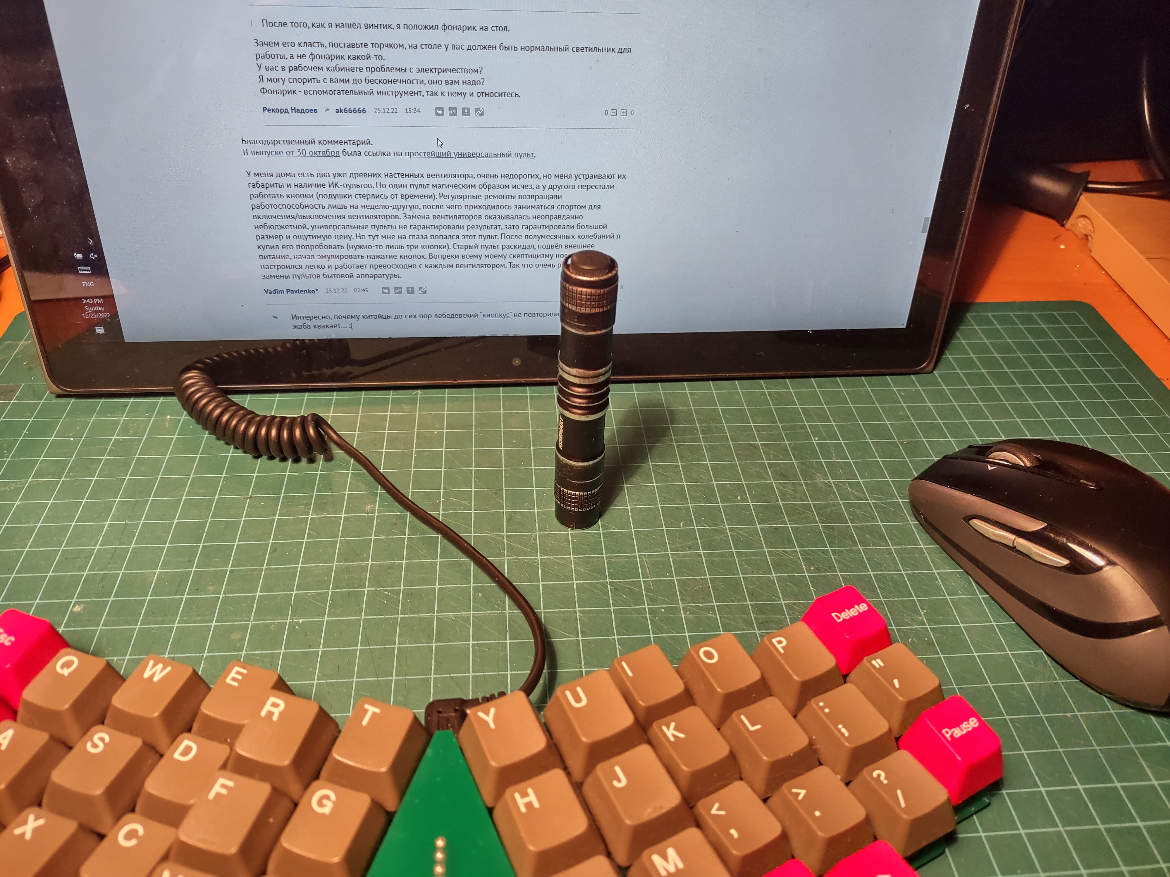 Мой фонарик как раз отличается повышенной укатываемостью, и падает от малейшего толчка. Так что, что-то должно его удерживать от свободного перемещения по столу, пока я его в карман не уберу. Был шнурок, но оторвался.