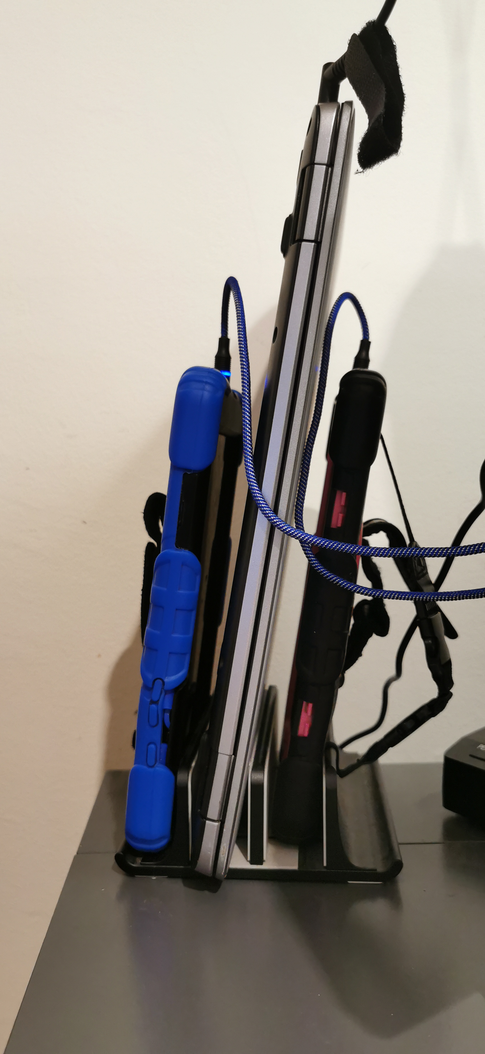 Подставка для ноута - любопытна, смущает что пластиковая. Но два штифта. У меня подобная от Ugreen, алюминевая, но винт посередине и планка пониже - 17" ноут хотя и стоит устойчиво, но мертво не фиксируется.