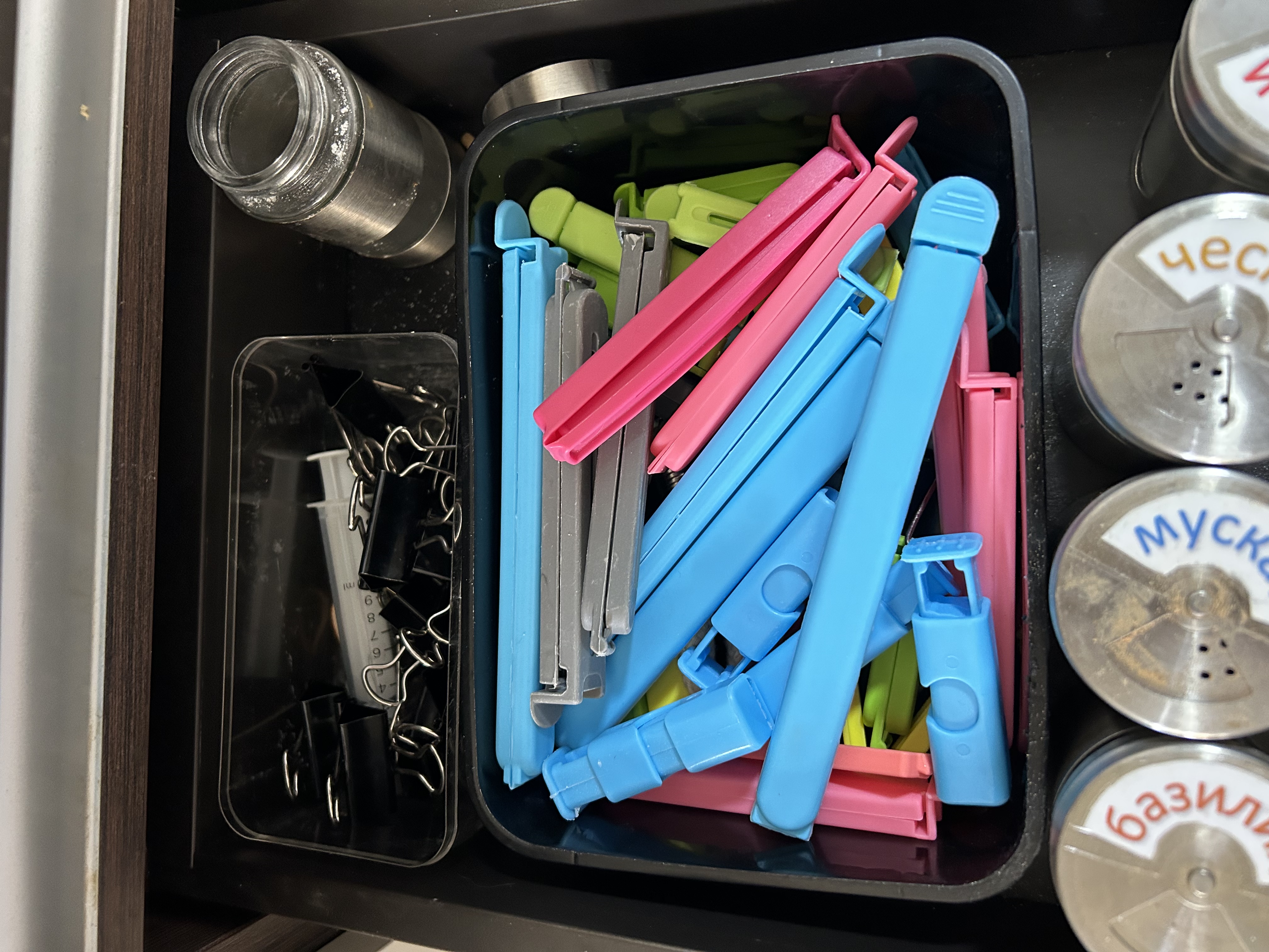 Для пакетов в морозилку месяц пользуюсь зажимами с пружинкой. Деградация пока не наступила (обычные пластиковые у меня умирают после трёх-пяти циклов в морозилке.