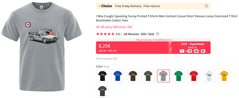 Однотонные хлопковые майки десяти цветов с принтом из "Назад в будущее". Размеры вроде азиатские, но мне по таблице подошел обычный L.