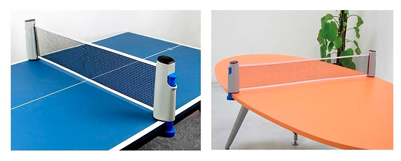 Очень компактный набор для игры в настольный теннис: раздвижная сетка, которую можно устанавливать на столы разных размеров, две ракетки и чехол. Нашли подходящий стол, установили сетку, устроили турнир. Замечу, что шарики для пинг-понга в комплект не входят, но вряд ли это проблема.