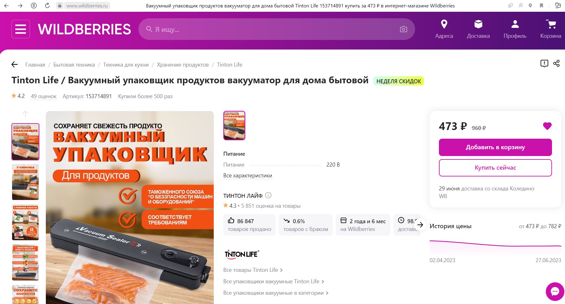 В статье с обзором вакууматора Laimeng 6621 (который в моем доме счастливо используется три года, причем задействуется почти ежедневно) я писал о том, насколько это нужная и очень полезная в хозяйстве вещь - вакууматор. Однако мой Laimeng 6621 стоит €70 (6500 рублей), и если не хочется тратить такие деньги (хотя оно того, я вас уверяю, совершенно точно стоит), то есть заметно более дешевые, хотя и менее удобные варианты. Один из таких вариантов - совсем простенький и дешевый вакууматор TINTON LIFE стоимостью всего в €10.