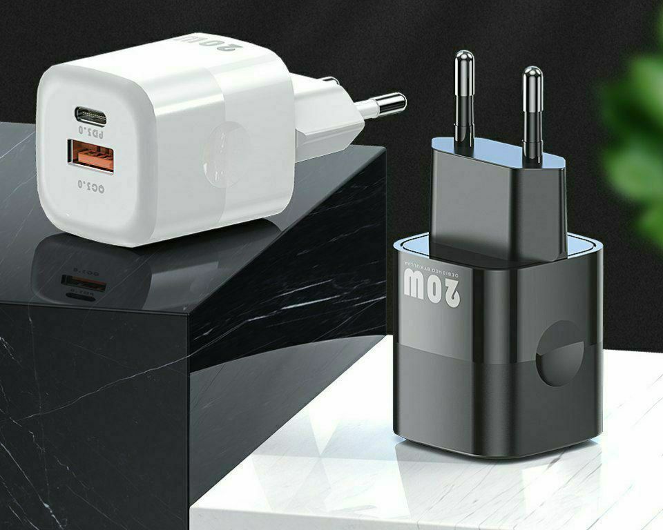 Миниатюрное зарядное устройство, мощностью 20 Вт с Type-C и USB выходами. Поддерживает быструю зарядку QC 3.0 и PD 3.0, а также зарядку двух устройств одновременно. Благодаря своим компактным размерам отлично подходит для командировок или отпуска.