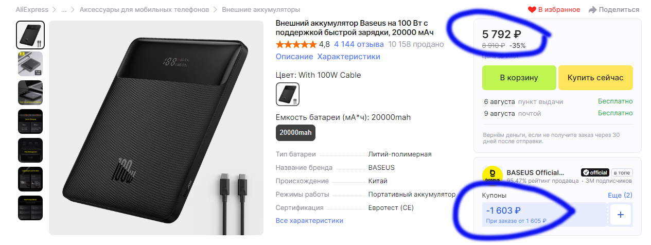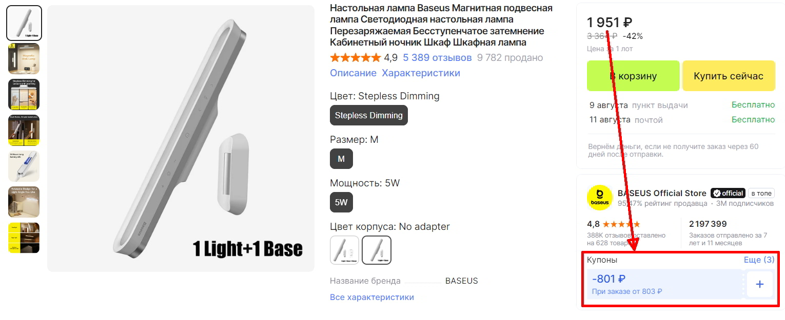 Главное не забыть взять купон под ценой (на скриншоте показал где он).