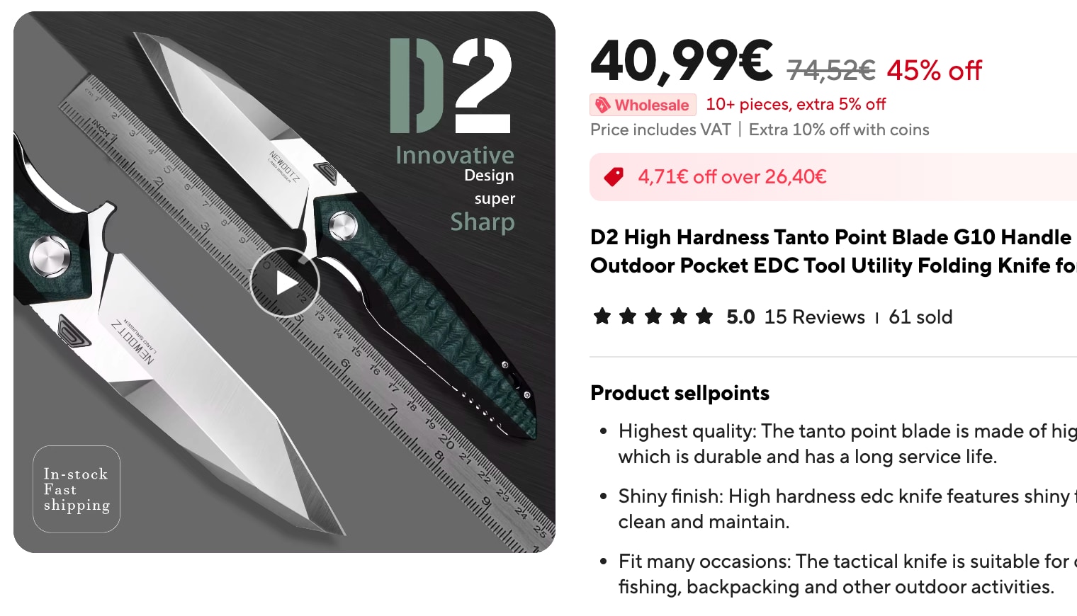 • клинок из стали D2 долго держит заточку и устойчив к коррозии