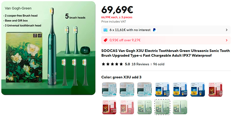 Электрическая щетка Soocas X3 (а также ее модификации) - отличная, я сам именно эти щетки использую уже лет пять. На Aliexpress увидел забавный вариант - этот производитель выпустил специальную серию щеток Soocas X3U в дизайне стиля картин Ван Гога (ссылка для РФ). Разные варианты дизайна, по три вида комплектаций - с запасными насадками. И себя можно порадовать щеткой с красивым оформлением, и в качестве подарка - самое оно. Тем более что щетка - реально классная. Она недешевая, но дешевые варианты - вообще рядом не стояли, я проверял.