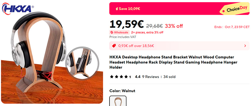 Симпатичная деревянная подставка под наушники (ссылка для РФ).