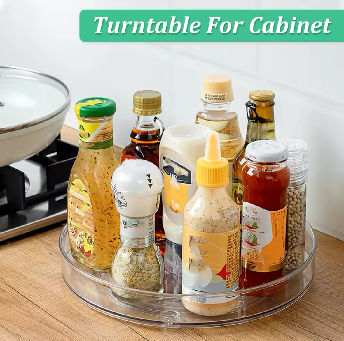 Если вдруг надо такую, которую переносить нада (ну мало ли, например соусы на стол поставить, а потом убрать, надо искать такую, которая одним куском (ссылку не дам, в магазине покупала). Те которые брала с Temu были из двух частей - кольцо-подставка и поднос. Это подходит для шкафчика или если на столе и ее не двигаешь.
