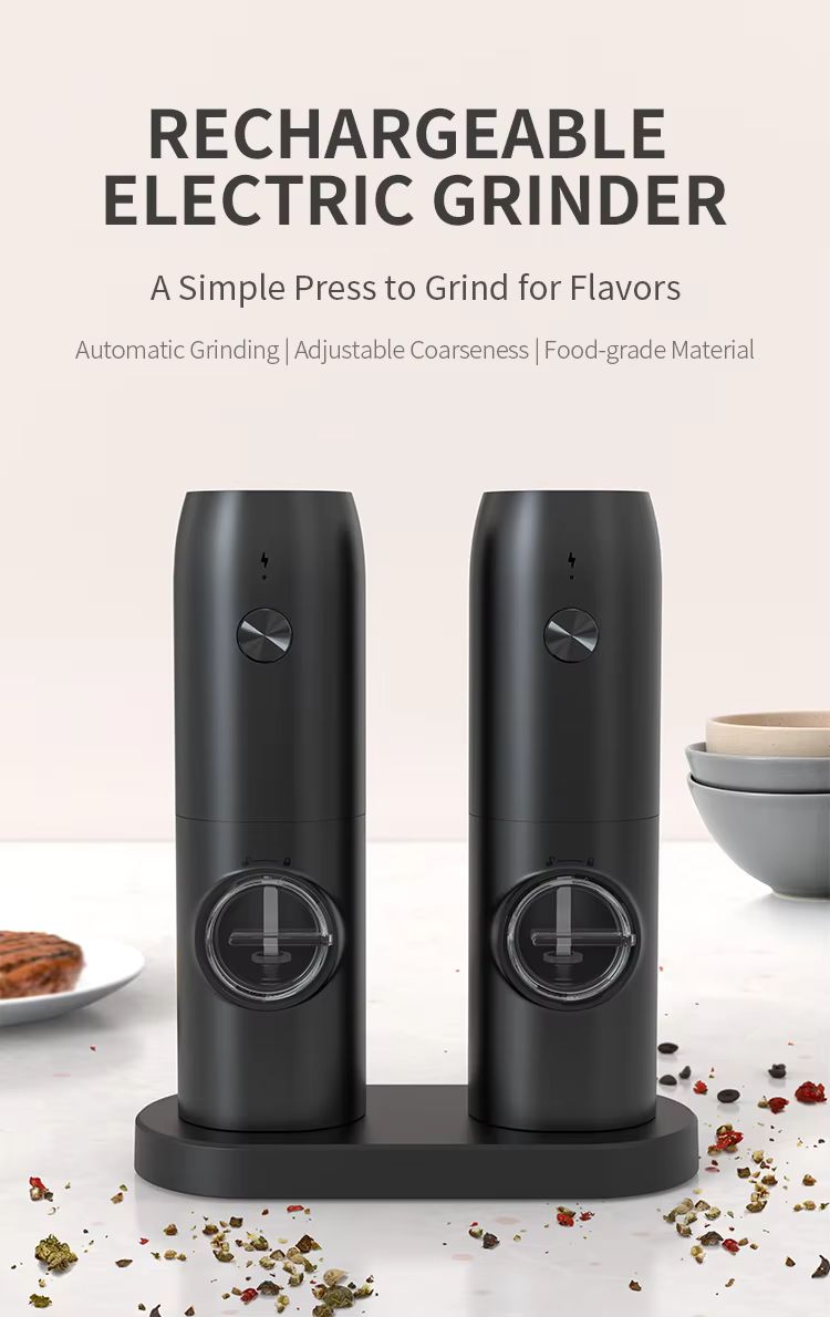 Пять уровней настройки фракции помола. Сниженный уровень шума. Контейнер для специй объемом 70 мл. До 200 помолов на одном заряде аккумулятора. Заряжается от Туре-С. При покупке двух электромельничек сразу, в подарок идет классная usb-зарядная станция/подставка. Так же в подарок ко всем мельничкам продавец кладет кабель, инструкцию и щеточку для чистки.