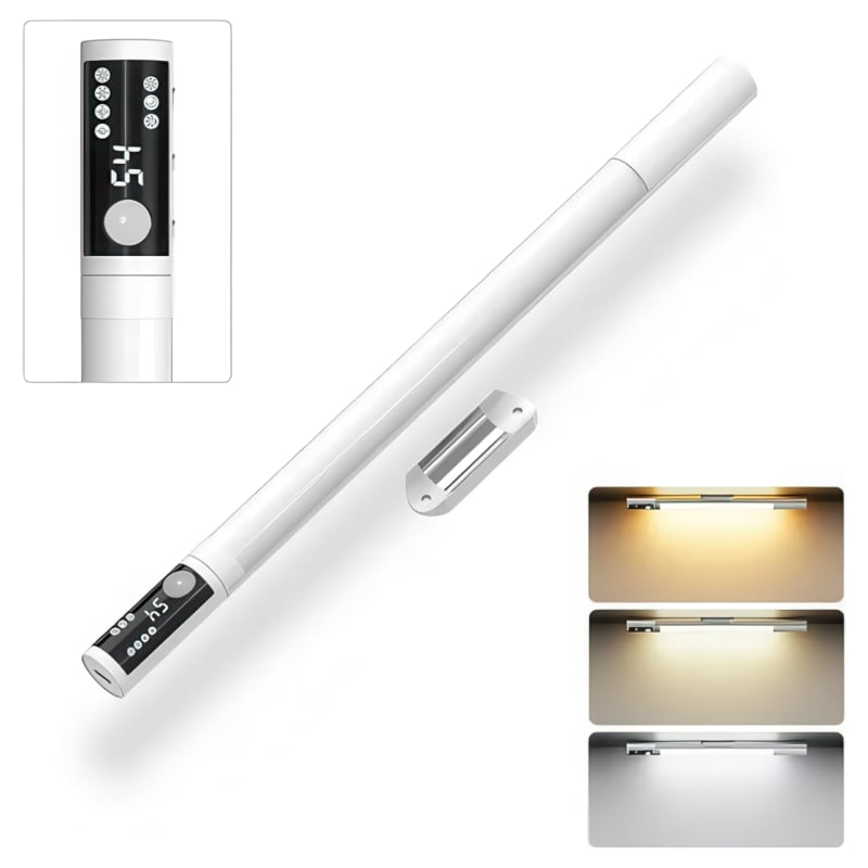 Беспроводной светильник с датчиком движения - для коридоров, шкафов, подземелий, бункеров, винотек, шубохранилищ, сейфов с драгоценностями и мн. др. Три режима работы (всегда вкл/ночной сенсор/дневной сенсор), три типа света (тёплый, нейтральный, холодный). Поворачивается под нужным углом в держателе и легко снимается с него, что удобно при подзарядке. Длина 40 см, батарейка 2000 mAh. Яркость настраивается.