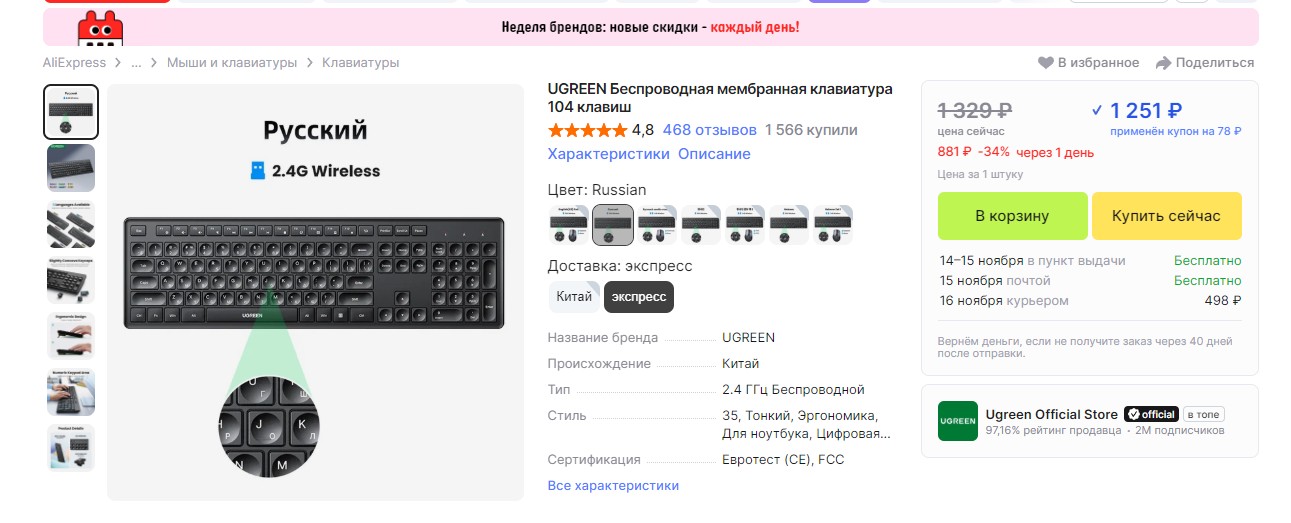 К сообщению прикреплена пара скриншотов от проверенных продавцов с высоким рейтингом на товары, которые у меня лежали в корзине для покупки.