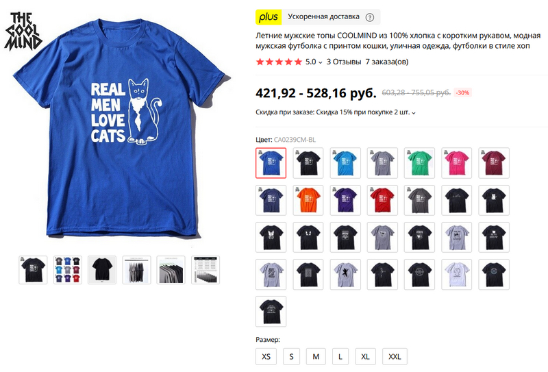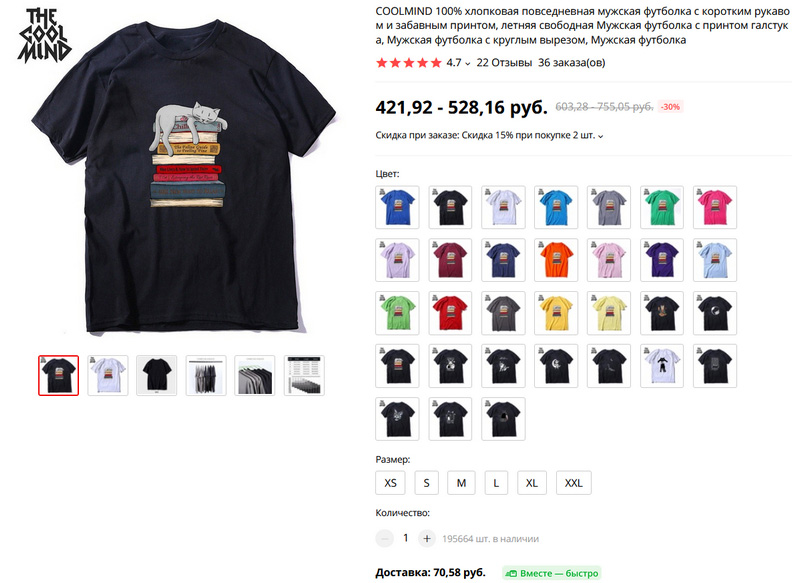 Выходить светить фонариком нужно в красивой майке. А мне тут друг ссылку прислал на майки с котами - тебе, сказал, понравится. Разные цвета, всевозможные размеры, стопроцентный хлопок. Друг себе заказал с другим рисунком, качество похвалил. Впрочем, хлопок и есть хлопок, чего уж там. Но типа нитки не торчат, выглядят хорошо и все такое.