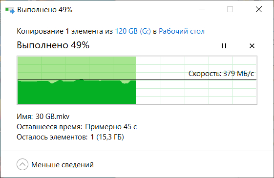 А вот замерил скорость копирования на моем KingDian - под 400 МБ/с.