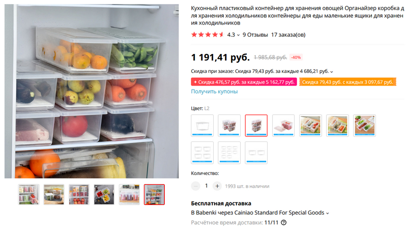 Наборы различных пластиковых контейнеров для хранения продуктов в холодильнике. И пользоваться заметно удобнее, и пространство внутри холодильника заполняется намного эффективнее.