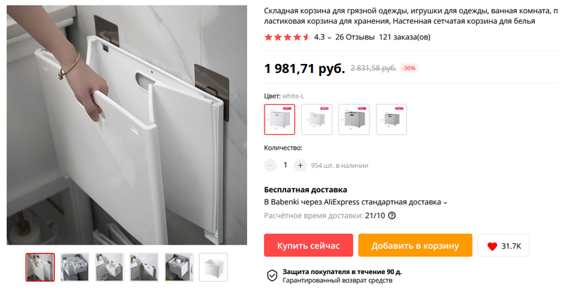 Полезная штука для небольших и не только небольших квартир - складная подвесная корзина для белья