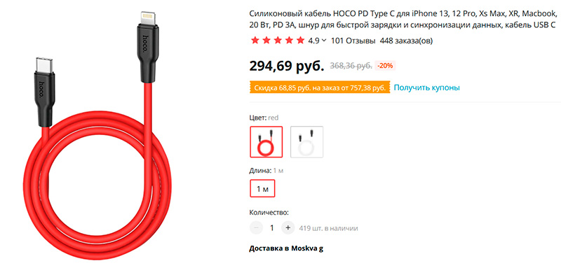 Защищенный от перетирания (обмотка сделана из силикона) кабель Hoco для айфонов/айпэдов. Длина - один метр, два варианта цветов, легко очищается при загрязнении. Но самое главное - не перетирается. У перетёрки нет шансов с этим кабелем!