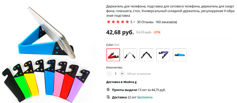 Это я для себя искал (разговаривать по видеосвязи и смотреть кино в дороге), наверняка еще кому-нибудь пригодится - ультракомпактная подставка для смартфона/планшета. В сложенном виде места почти не занимает. Подходит даже для десятидюймовых планшетов. Пять видов цветов.