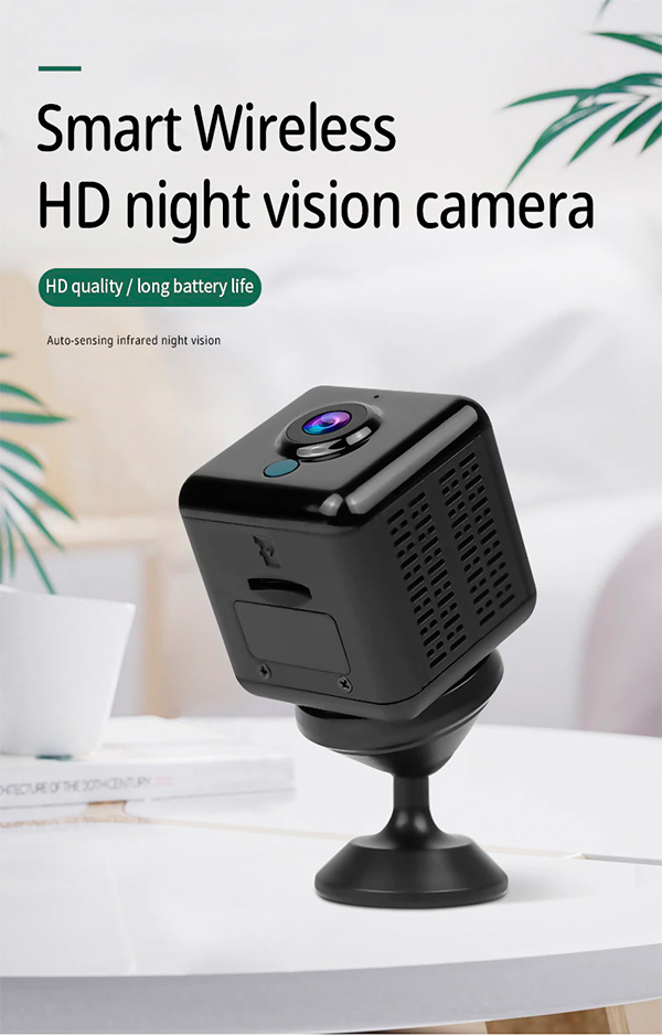 Недорогая и очень компактная камера для видеонаблюдения: удаленный доступ по Wi-Fi, автоматический режим ночного видения, поддержка карты microSD (есть режим перезаписывания старых файлов при переполнении), автономность до 4-5 часов.