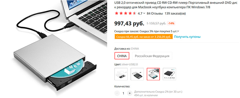 Времена CD-DVD давно прошли, но иногда бывает нужно считать информацию с каких-нибудь старых дисков. Для этого удобнее всего иметь внешний DVD-привод, подключаемый по USB. Несколько вариантов цветов, есть доставка с российского склада.
